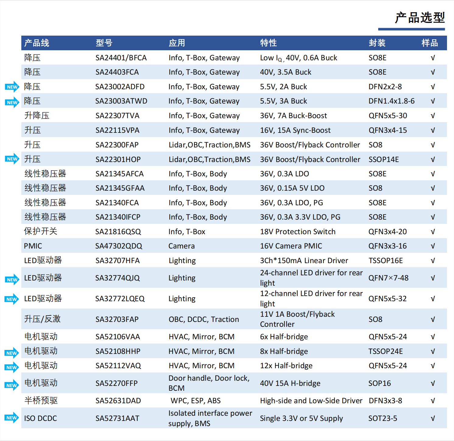 主要产品包括:直流转换芯片,交直流转换芯片,多路电源管理芯片,LED照明芯片,电池管理系统芯片,光感,马达驱动,音频功放,电源模块,保护开关,静电保护,电表计量芯片及信号链芯片解决方案。