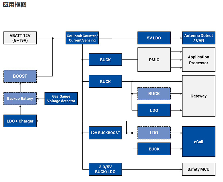 T-Box,即智能远程信息处理网关(Telematics Box),是装在车内的一个带有通信功能的盒子,是具备数据输入输出、数据存储、计算处理以及通信等功能的车联网控制单元(TCU)。矽力杰已经开发应用于T-Box的高性能DC-DC,LDO电源管理芯片及音频,静电保护等产品。